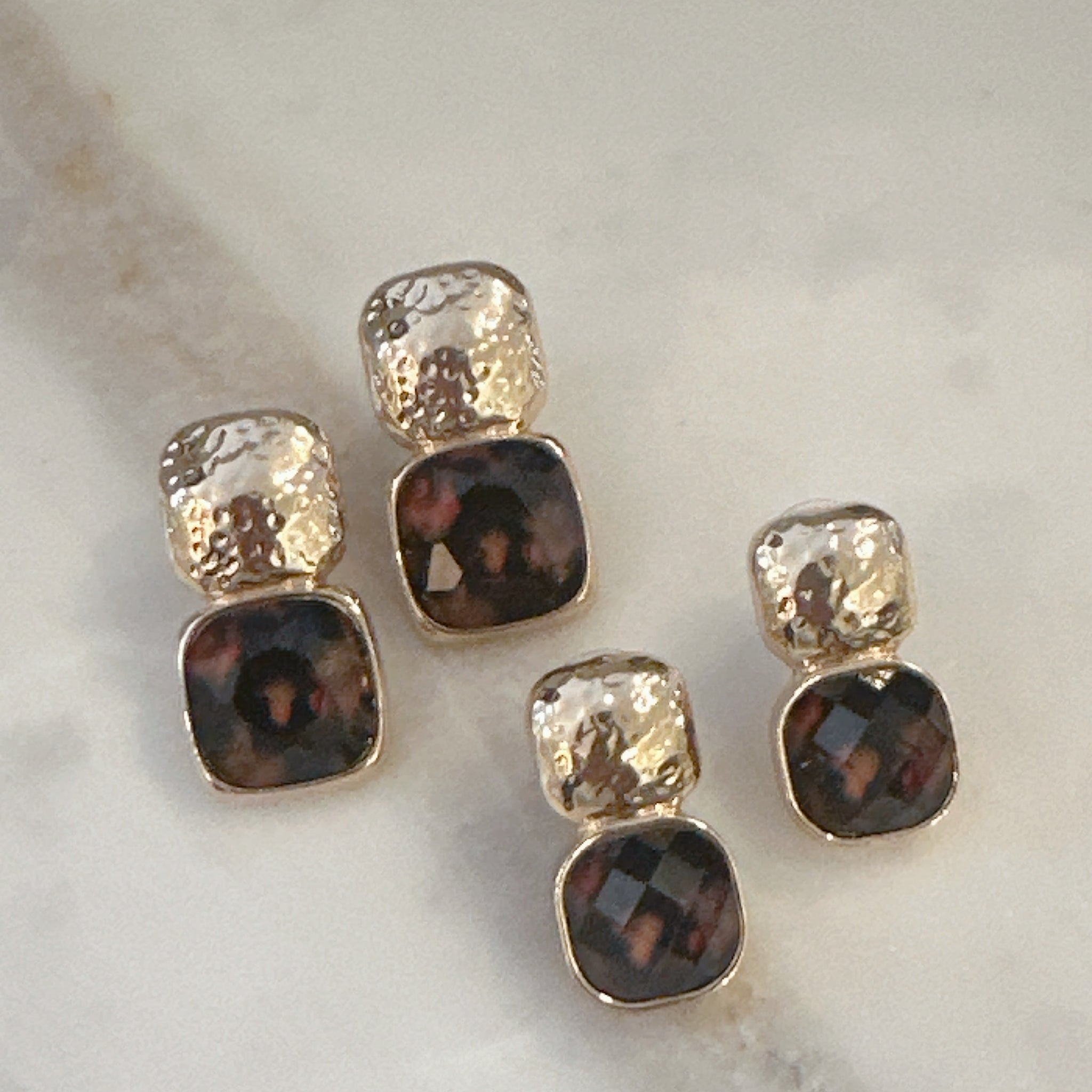 GEMSTONE SQUARE DROP EARRINGS (LARGE)